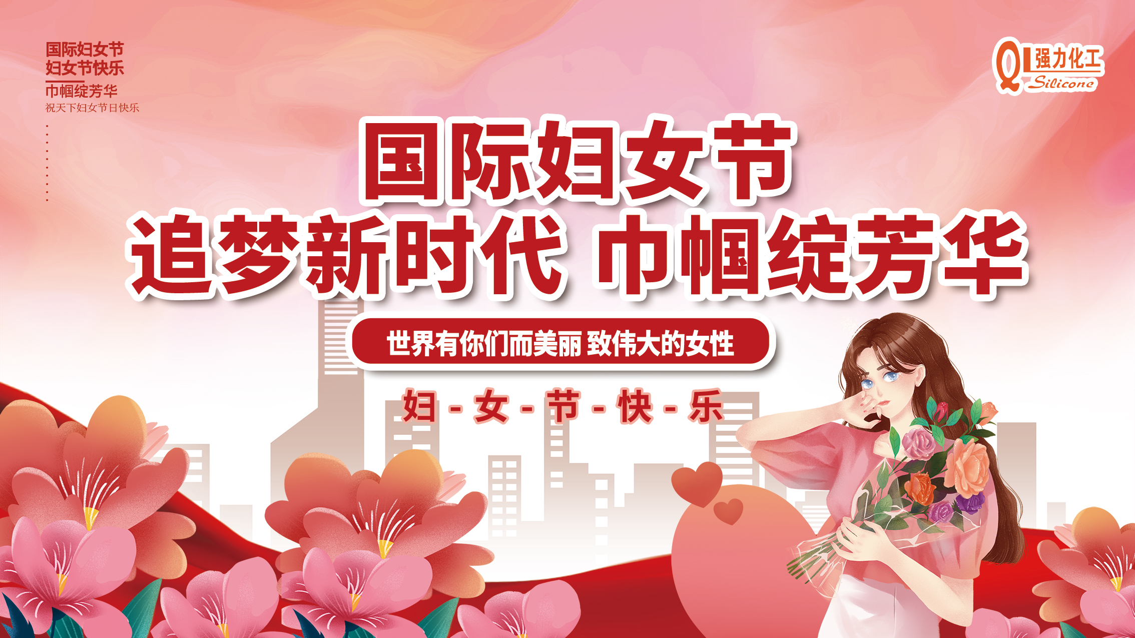 春臨盛世三月天,姹紫嫣紅映紅顏。伴隨著融融的春意,我們迎來了第112個“三八”國際勞動婦女節(jié)。在此,強力化工向辛勤工作的婦女同仁們以及世界各國各地的女同胞們,致以節(jié)日的問候和良好的祝愿!