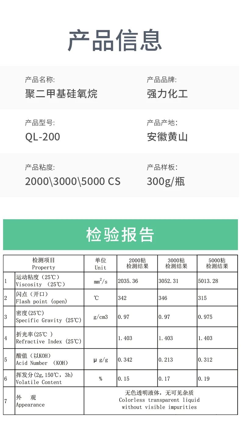 強(qiáng)力化工不斷升級(jí)建設(shè),為了響應(yīng)新老顧客的需求與要求,公司決定新增三個(gè)牌號(hào)201硅油,分別是QL-200 DM2000、QL-200 DM3000,QL-200 DM5000。品質(zhì)過硬,價(jià)格實(shí)惠,歡迎聯(lián)系咨詢。
