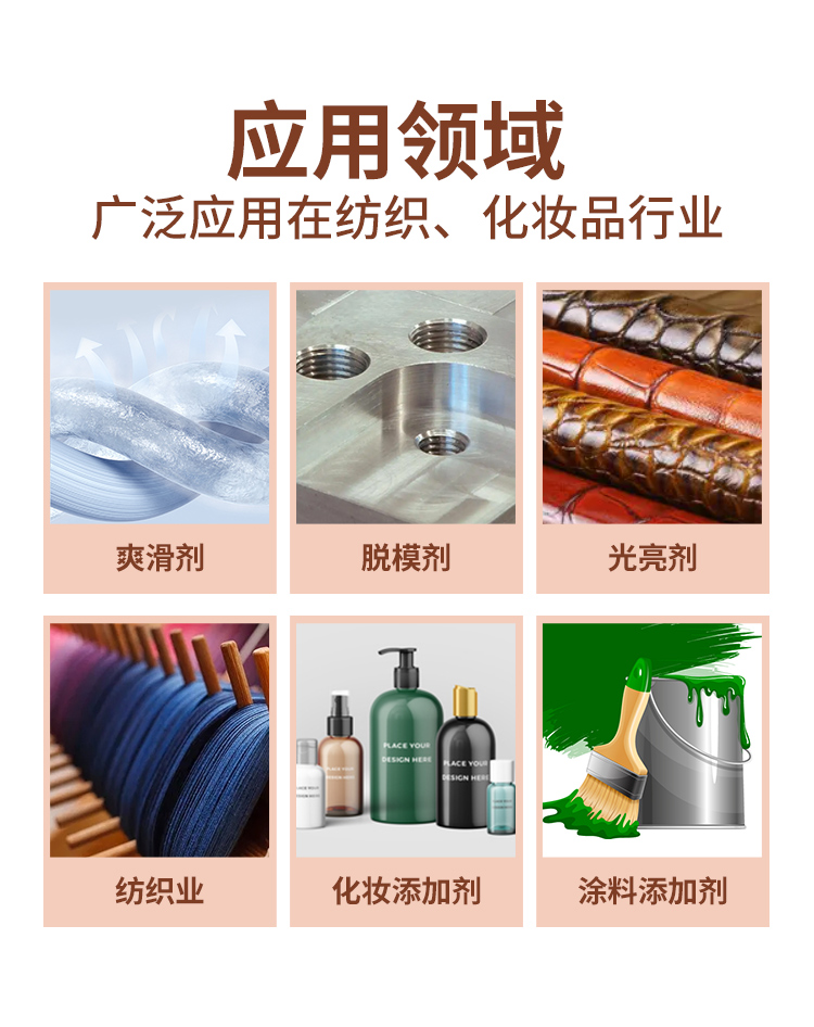 氨基硅油在纖維整理、樹脂改性、化妝品和涂料等領(lǐng)域有著廣泛的應(yīng)用。氨基硅油中的氨基極性強(qiáng),反應(yīng)性高,具有吸附性、相溶性,并且易乳化,可與纖維表面活性基團(tuán)發(fā)生相互作用,提高耐洗性、賦予織物柔軟、防皺等特性,廣泛應(yīng)用于紡織行業(yè)的纖維后整理劑。除此之外,還可作為涂料添加劑以及化妝品添加劑。