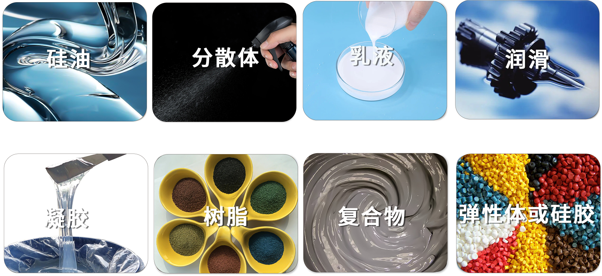 硅油及其衍生物的主要應(yīng)用為:脫膜劑、減震油、介電油、液壓油、熱傳遞油、擴(kuò)散泵油、消泡劑、潤(rùn)滑劑、疏水劑、油漆添加劑、拋光劑、化妝品和日常生活用品添加劑、表面活性劑、顆粒和纖維處理劑、硅脂、絮凝劑。