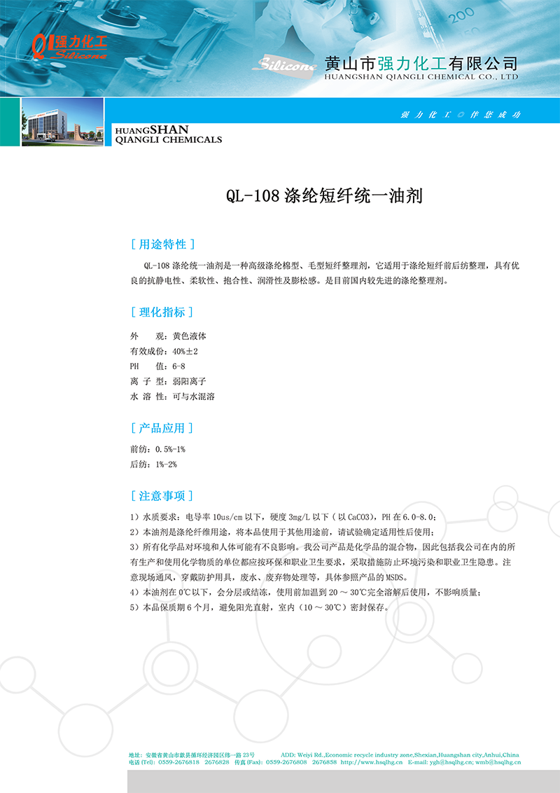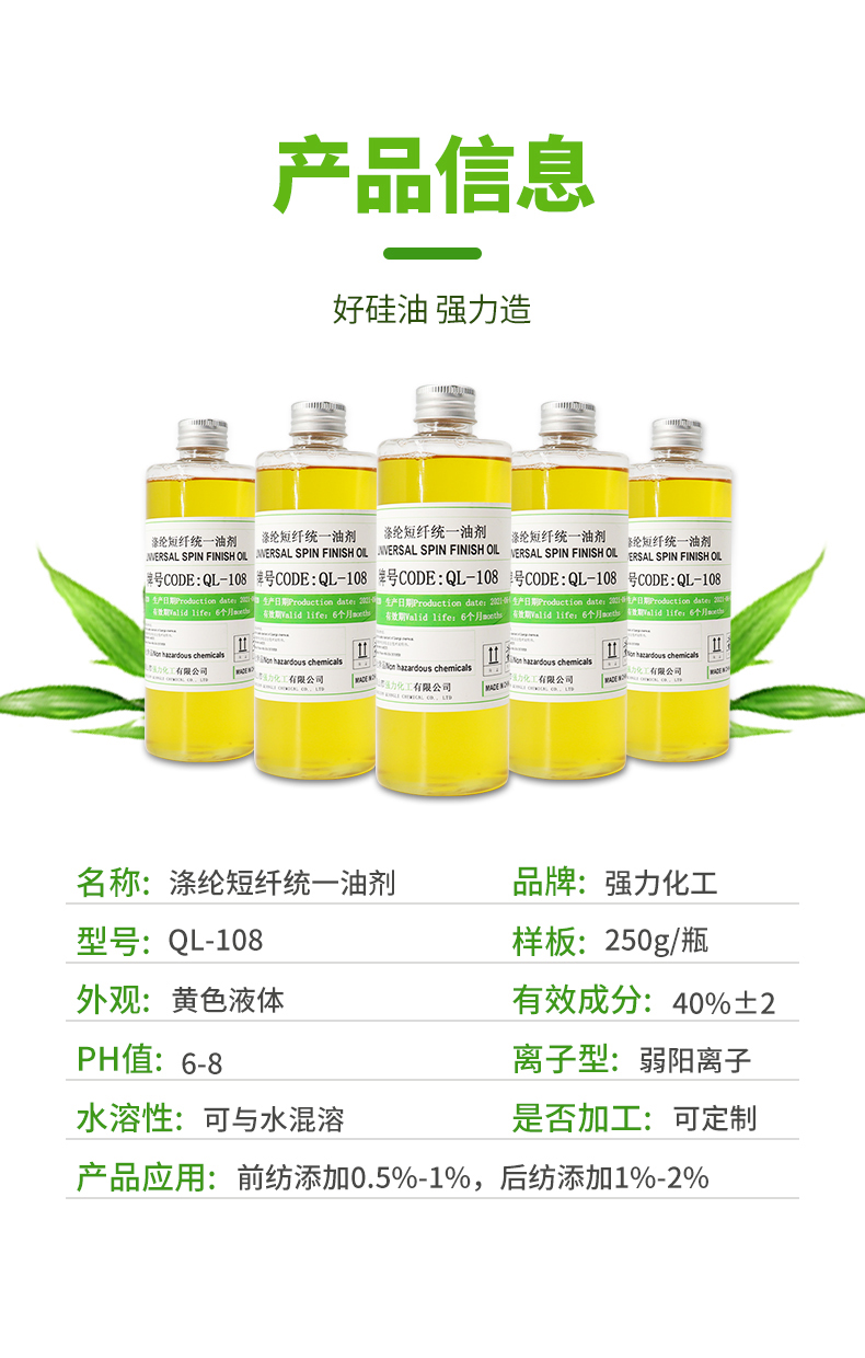 強(qiáng)力滌綸短纖統(tǒng)一油劑QL-108 紡織柔軟劑處理劑